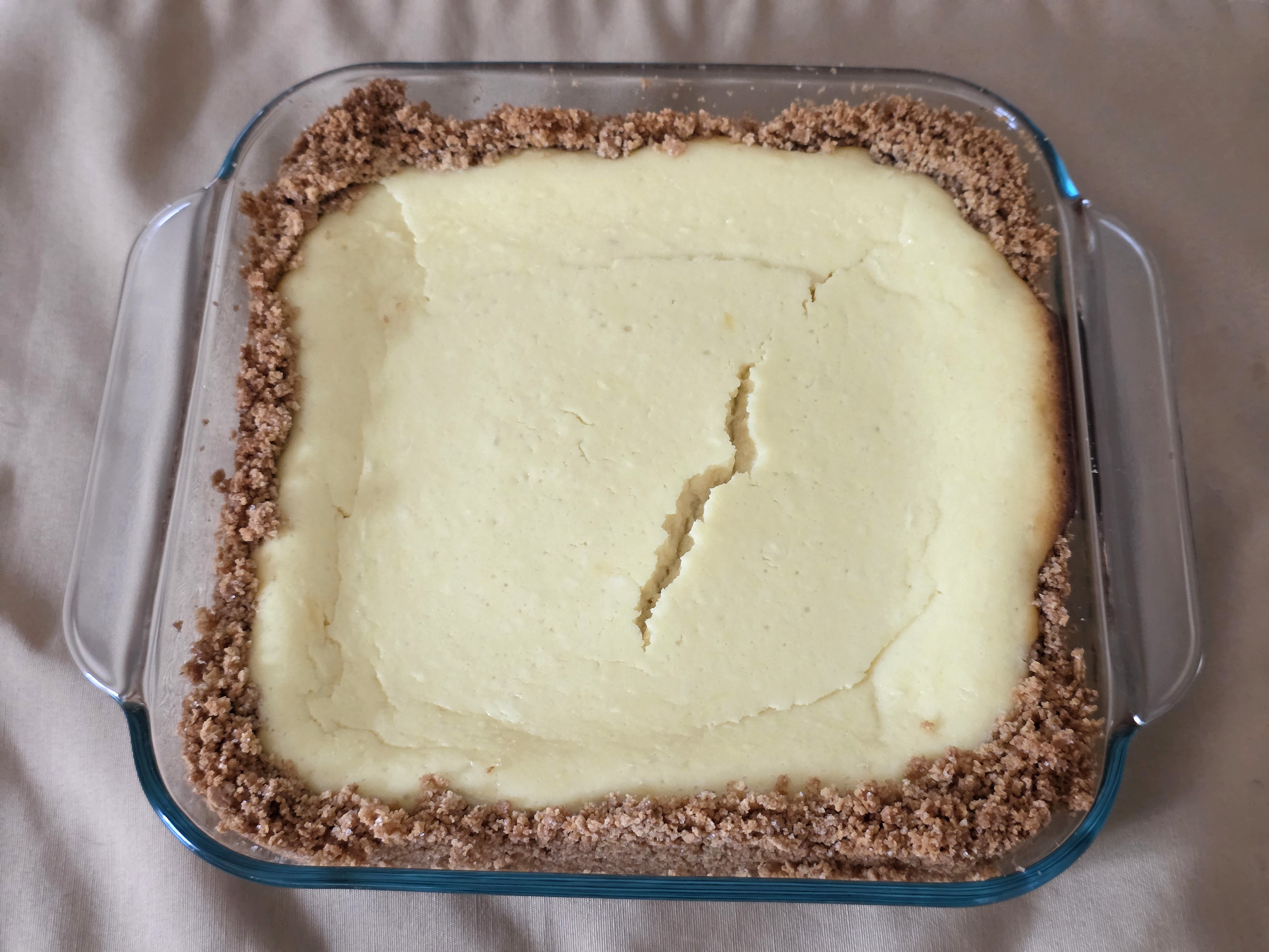 The first was prepared in a Pyrex 8" Square Glass Baking Dish and included a crushed graham cracker base.