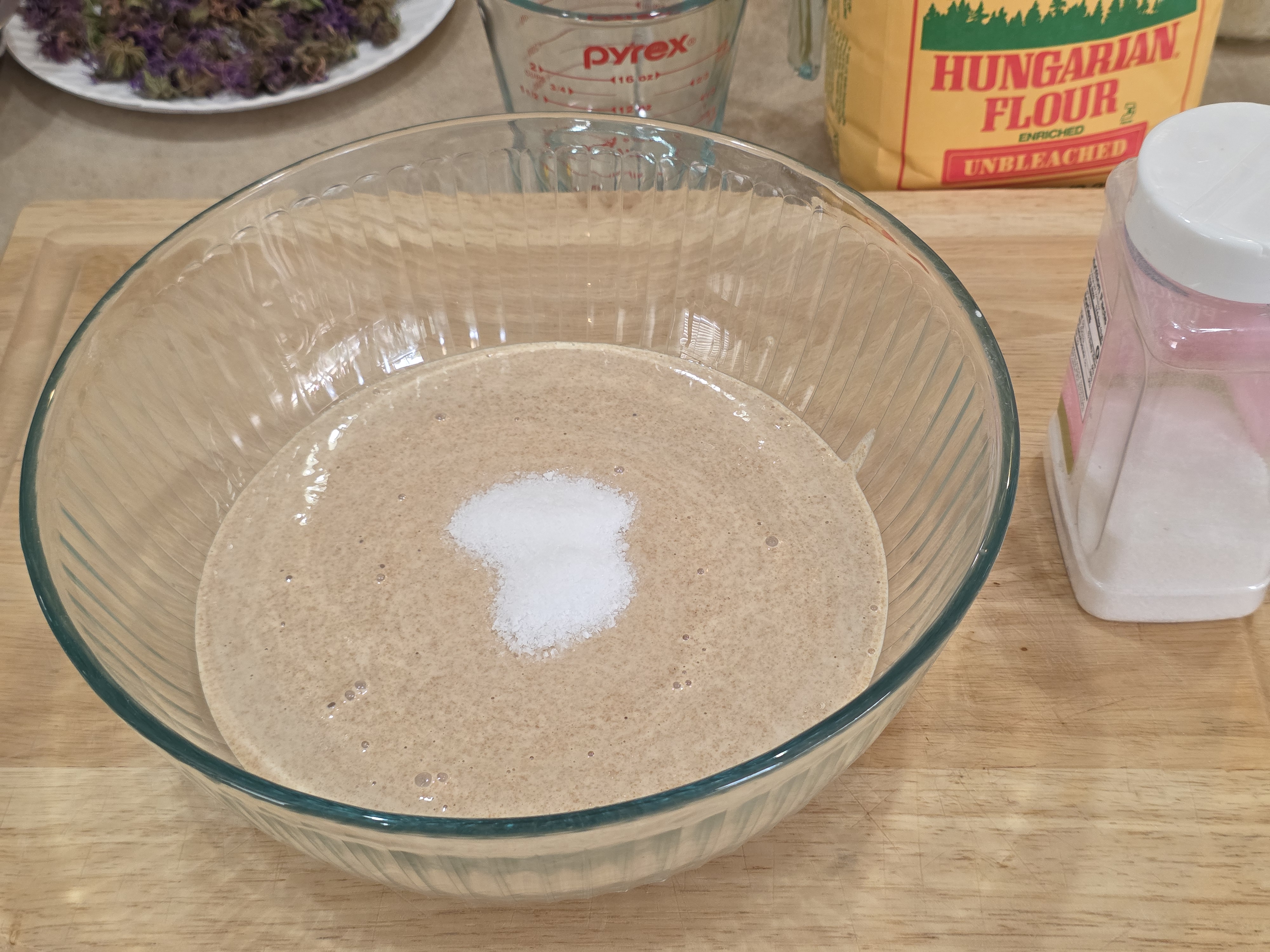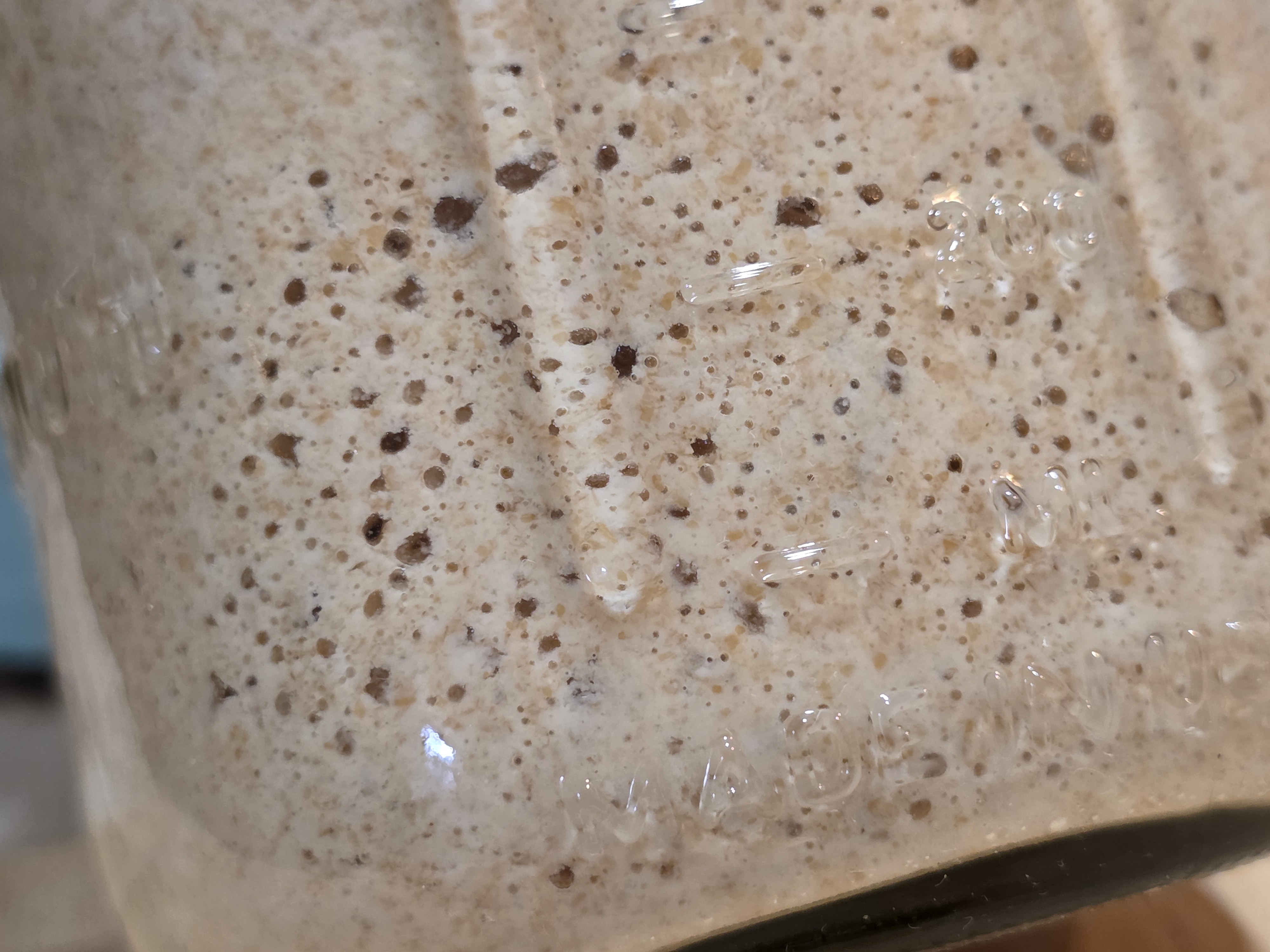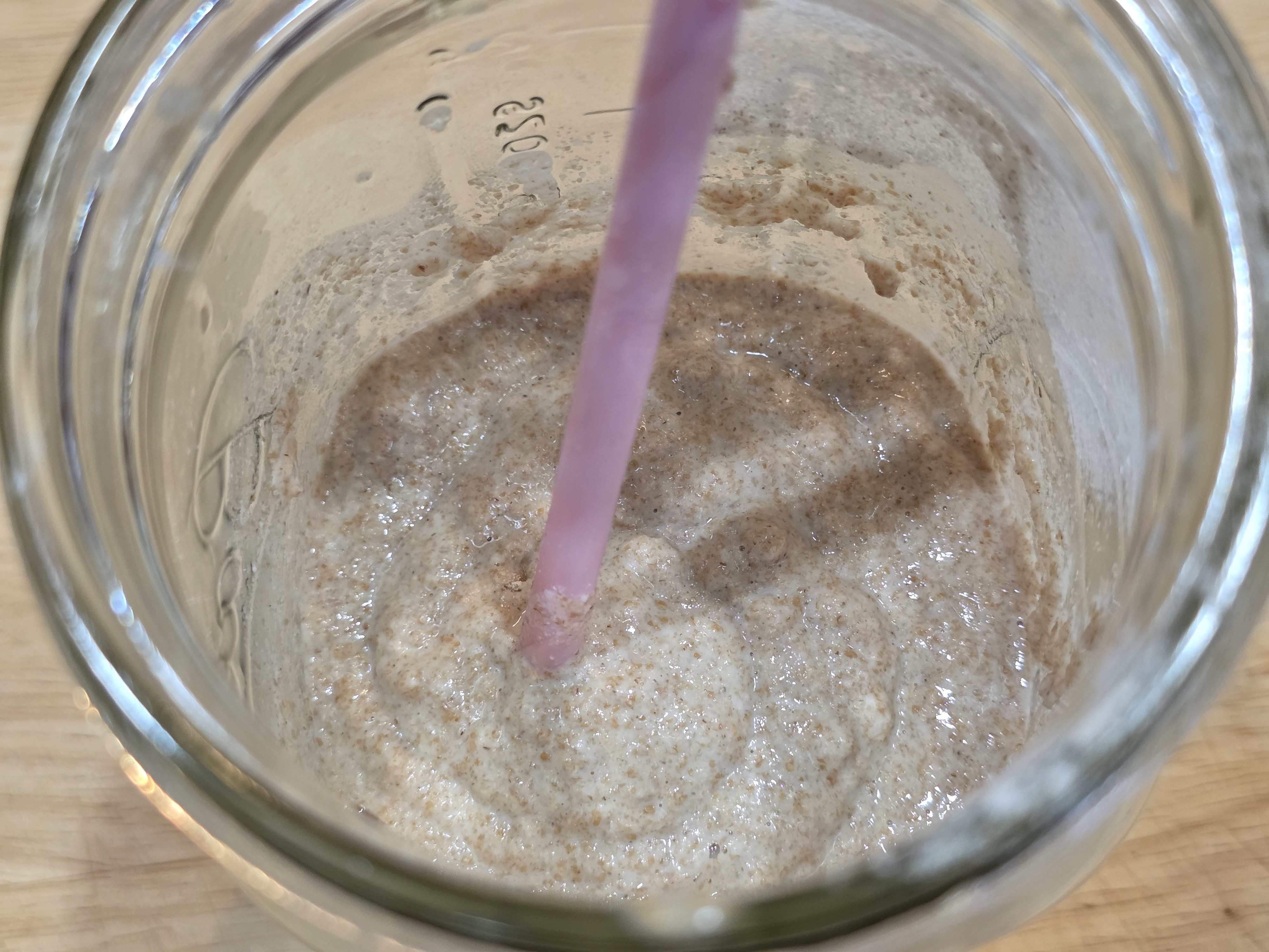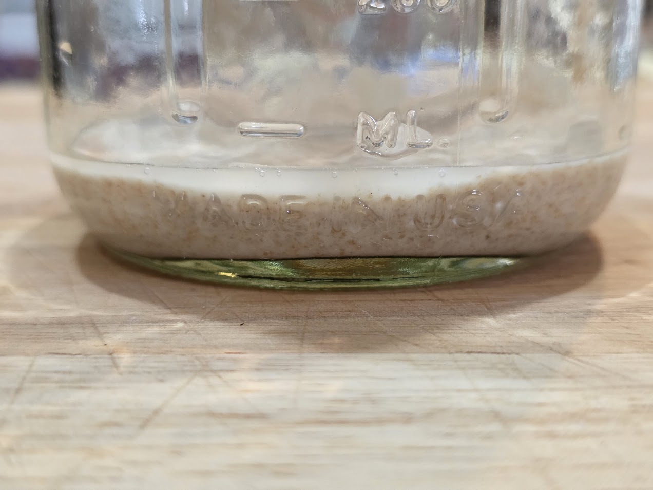 By this morning, the new starter had begun to actively ferment, producing air bubbles throughout the jar. This will be used for the next bake.
