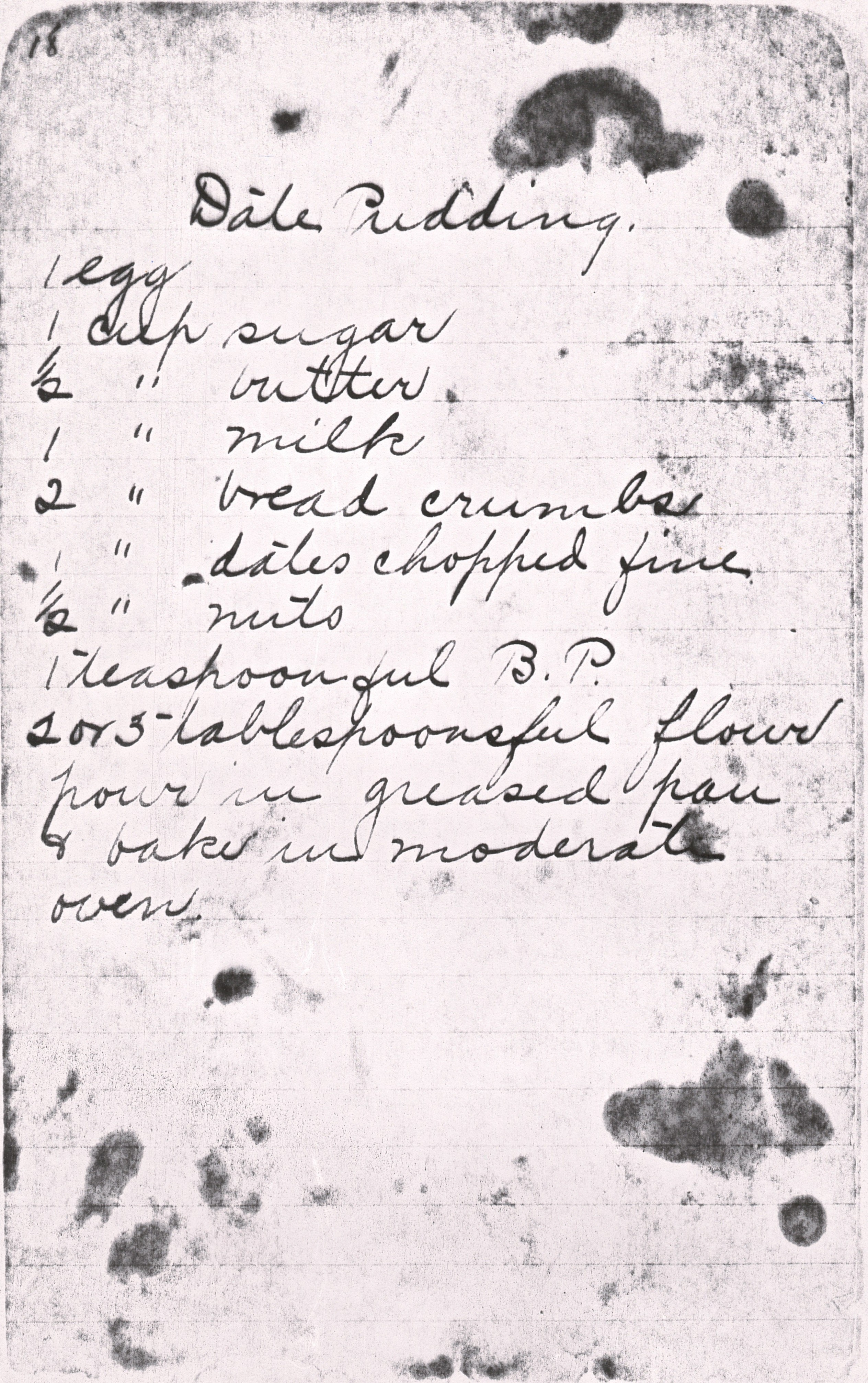 The recipe for Date Pudding is as follows:
