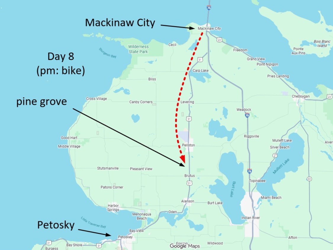 Route from Mackinac City to pine grove campsite