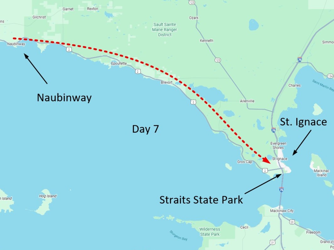 I'm hoping to make it to the Straits State Park in St. Ignace by Sunday.