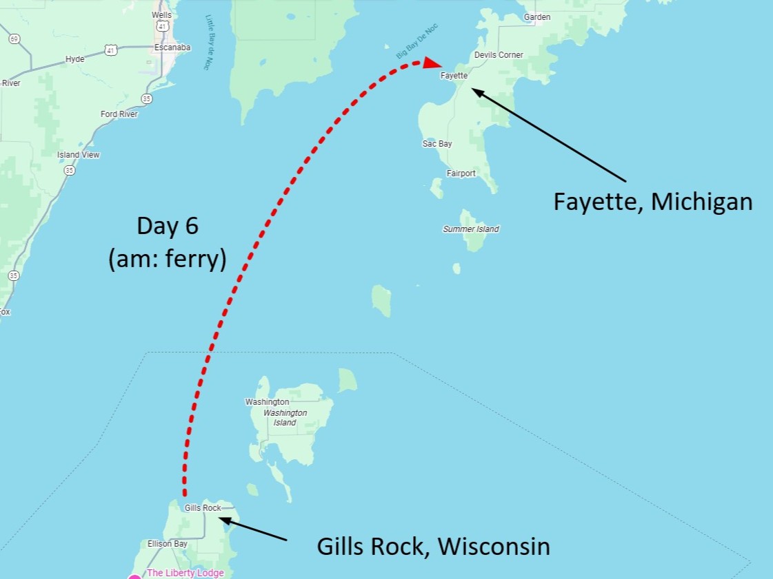 Tomorrow I will be taking the Island Clipper ferry to Fayette, Michigan. This is a big milestone in my journey around Lake Michigan.