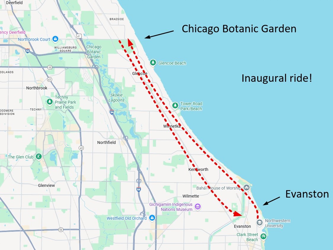 From Evanston, route north on Sheridan Road approximately 10 miles to the Chicago Botanic Garden, returning south on Green Bay Road