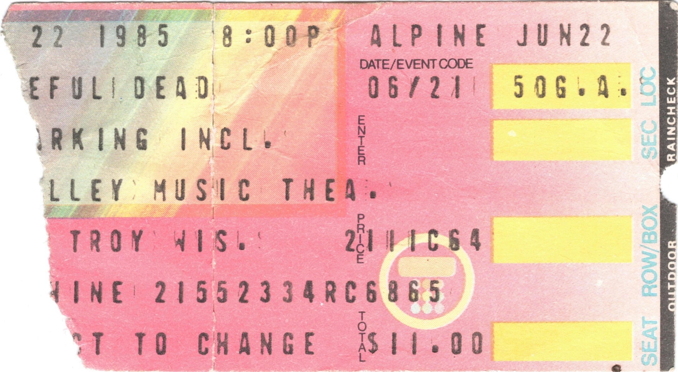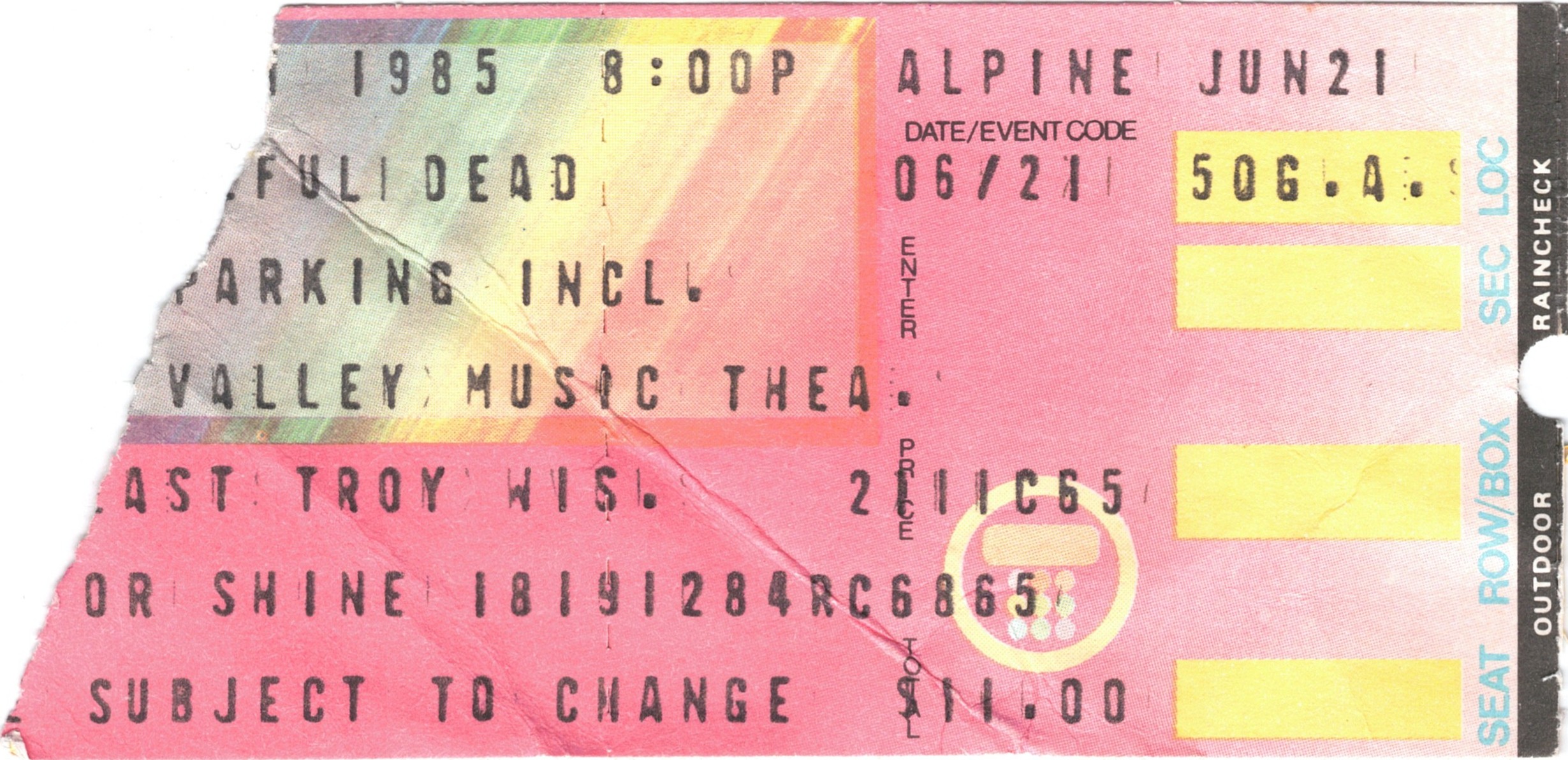 Concert tickets, purchased in Evanston (Rose Records?)